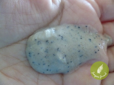The scrub has a mild vanilla scent and it’ quite fluid in texture but when you spread it out on skin, it becomes like a paste and transforms into a slight lather when a bit of water is added. In fact, it feels like my skin is being thoroughly cleansed even if I don’t use any soap/body wash after this has been rinsed off.