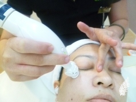No skincare is used during the icoone® treatment. The machine is used primarily for toning and firming skin so the beautician began by cleansing my skin and stuffing my ears with some cotton wool because the machine would produce a loud sound but it is bearable even without the makeshift ear plugs. I think the sound of my dentist’s drill is a lot more scary.