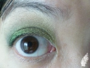 Combined, these 2 shades are just perfect for a green look. I applied an eyeshadow primer, Too Faced Shadow Insurance beneath the pigments. It’s always easier to apply pigments over an eyeshadow primer as they adhere better.