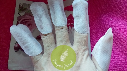 Some time ago, I purchased Innisfree Eco Finger Mask out of curiosity since I’d never used a finger mask before. The sachet is divided into 2 sections so you can pamper just one hand at a time if you wish. It can get a bit clumsy trying to put the mask on the second hand after you’ve put the mask on one hand. Better and faster to get someone to help you or put it on one hand first, wait 15 minutes and after removing the mask, open up the other section of the sachet and put it on the other hand.