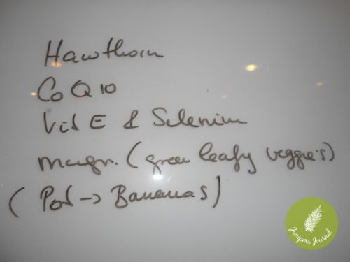 As for supplements to Juliet’s heart medication, Dr Susanna recommended hawthorn (I already knew about this because I read about its benefits for dog hearts), CoQ10, Vitamin E, Selenin, Manganese (from dark green leafy vegetables) and Polonium from bananas.