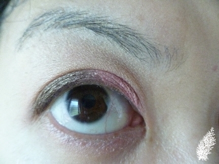 The eyeshadow quad (called “printed pinks”) consists of an ivory beige, a brown, a pink and a dark brown. While the first three colours have varying degrees of shimmer, the last colour is the most matte. The brown and pink reminded me of Clinique’s Colour Surge Duo in Strawberry Fudge which I had as part of a Gift With Purchase set.