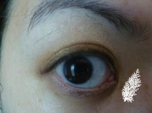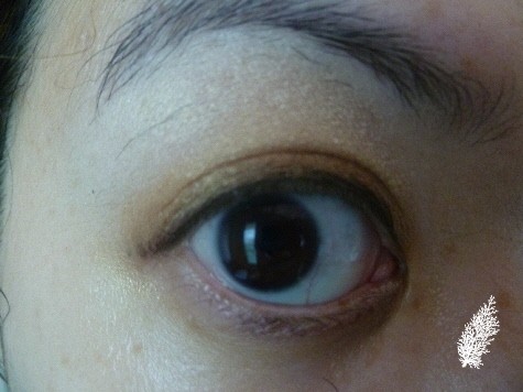 I can hardly see the 2 highlight colours on the extreme left but they are there. The darkest brown shade can be used as eyeliner using the fine tip sponge applicator provided in the palette. Brown eyeliner makes for a less harsh look than black but I prefer to add black eyeliner over the brown.