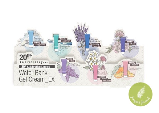 This set comes in a tin box with a set of seven scented Water Bank Gel Cream_EX tubes. Each tube of 10ml has different mood lifting scents that will take you through each day.