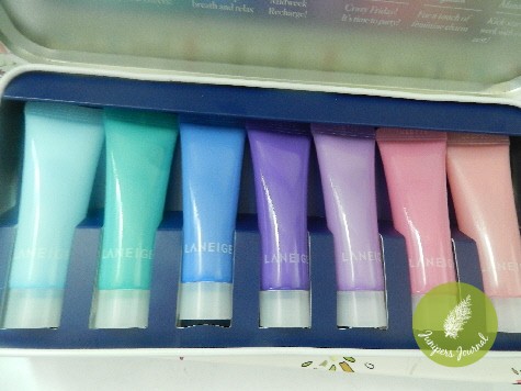 This tin box is so cute and the fact that it contains 7 scented Laneige Water Bank Gel Cream_EX tubes, each tube of 10ml with different mood lifting scents has to be a selling point. Who doesn’t want a different scent of moisturizer for every day of the week? Okay, there may be some who prefer non-scented skincare but that’s not me.