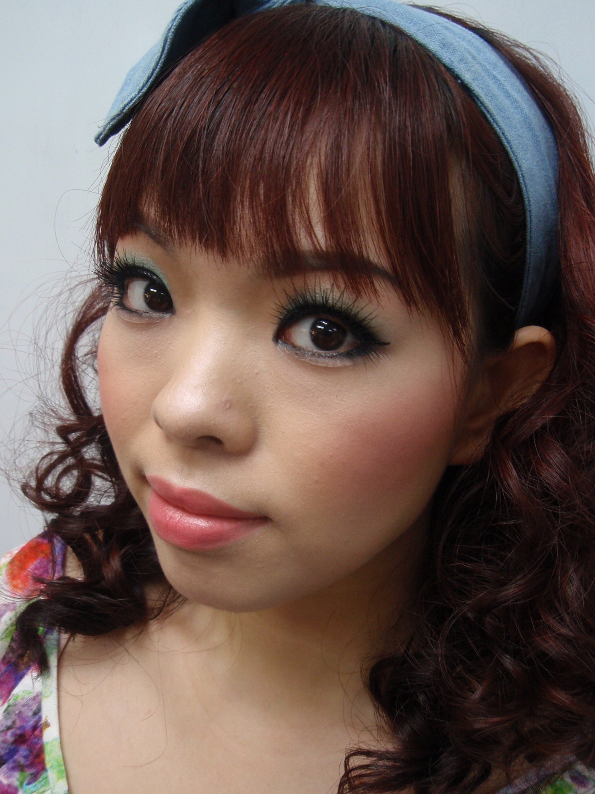 2. Apply the lime green eyeshadow over the middle of the eyelids.