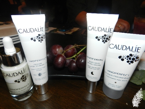 L to R – Vinoperfect Radiance Serum Complexion Corrector, Vinoperfect Day Perfecting Fluid SPF 15, Vinoperfect Cell Renewal Night Cream, Vinoperfect Enzymatic Peel Mask