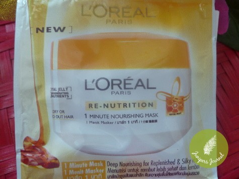 This is a box of 5 sachets of L’Oreal Paris Re-Nutrition Nourishing Mask which I picked up at one of the Isetan KLCC cosmetics sales. It was just RM5 for 5 sachets so it was worth a try. Sounded promising since my hair is so dry and definitely in need of nutrition.