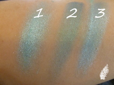 The Surf The Ocean green shade pales in comparison to Lucky In Love as it’s so sheer. Lucky In Love is not only more striking, the texture is also smoother, it has a nicer frost finish and is more pigmented. Lucky In Love looks great on its own and would probably look even better when applied underneath any green eyeshadows.