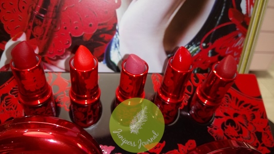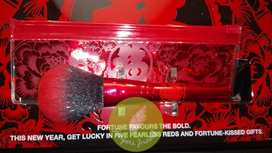 There’re 5 shades of red lipsticks, two of them are new (Lotus Light and Lucky In Love), other products include a Powder Blush Duo and Powder/Blush Brush with black and red bristles (hopefully the red bristles won’t fade after cleaning the brush). The Powder/Blush Brush is rather pricey (retails at RM170). At that kind of price, I could get a whole set of brushes elsewhere but it’s a collectible item,