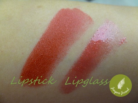 The lipstick is a blue-red and appears redder than in the image above where it looks like an orange-red. I liked the lipglass more than the lipstick as it’s so pigmented and glossy without being in the least sticky, love the worn together. It looks completely different when the lipglass is applied over the lipstick.