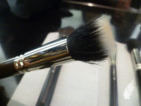 Has a combination of natural and synthetic fibres and is a multi-purpose brush as it can be used to apply liquids like moisturiser, Strobe Cream and foundation using the synthetic (lighter side) of the brush. To apply loose powder, use the natural (darker side) of the brush.