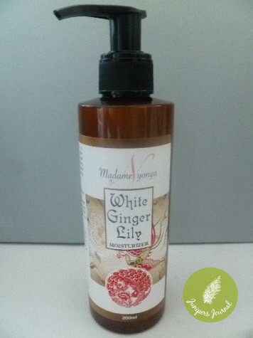 Almond Oil, Camellia Oil, Rice Bran Oil, Aloe Vera, Jojoba Oil, Goji Berry Ginseng Calendula, Green Tea Extracts are some of the key ingredients in Madame Nyonya White Ginger Lily Moisturiser. It has a lovely texture, not too thick yet deeply hydrating for face and body.