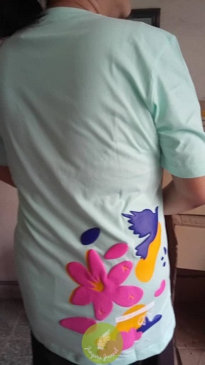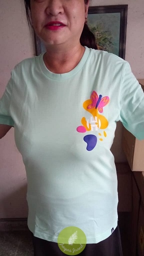 The graphics on this shirt are beautiful and although I am not sure what the inspiration behind this shirt is, it reflects flora and fauna. There is a prominent pink butterfly in front and a blue bird at the back. I expected there to be a plain canvas at the back but again to my surprise, the design at the back is even lovelier than the front.