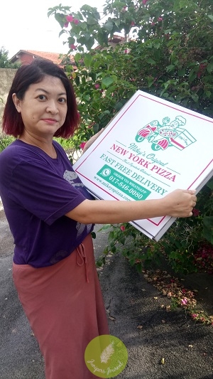 dsc_0013There are pizzas and then there are pizzas made so well and impressively massive such as those made by Mikey’s New York Pizza. When my made-specially-for-review Mikey’s New York Pizza Chizza What? Chizza Who? Pizza arrived at my door step yesterday evening, I was blown away by the sheer size of the box. It is like the Mother of all Pizzas at 18 inches. It’s divided into 8 slices each measuring 9 inches and the entire pizza can feed 4 to 8 people depending on how ravenous said people are. For small eaters, one slice is plenty.