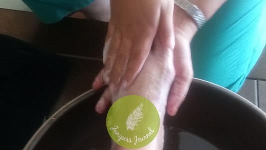Firstly a foot soak and scrub which I was so looking forward to as I haven’t had a foot soak/scrub since my last pedicure ages ago. So long ago that I cannot even remember when. The water pressure was rather weak, a sign of the imminent water cut perhaps?