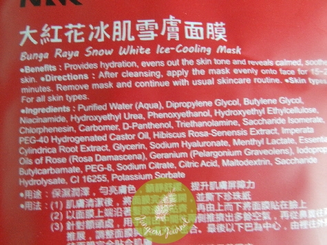 Naruko Bunga Raya Snow White Ice-Cooling Mask is a thin mask and as such adheres very well to my skin. It has high hydration properties and I would not hesitate to purchase this whenever I feel my skin needs a boost of hydration and soothing.