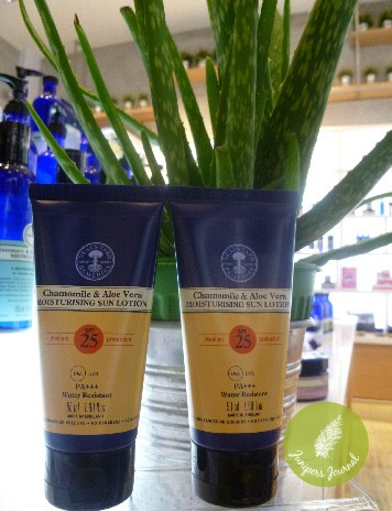 Neal’s Yard Remedies Chamomile & Aloe Vera Moisturising Sun Lotion SPF 25 protects skin from UVA/UVB rays