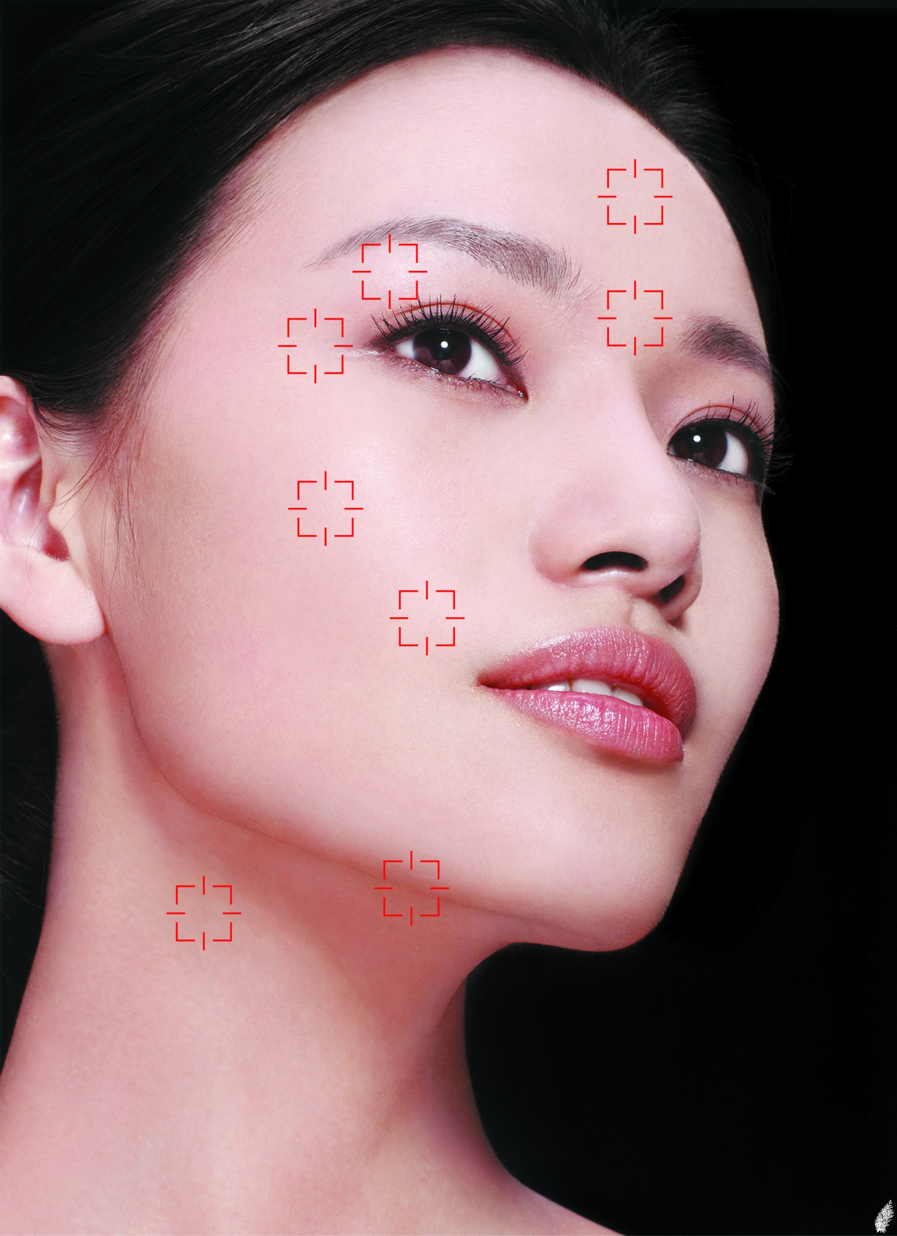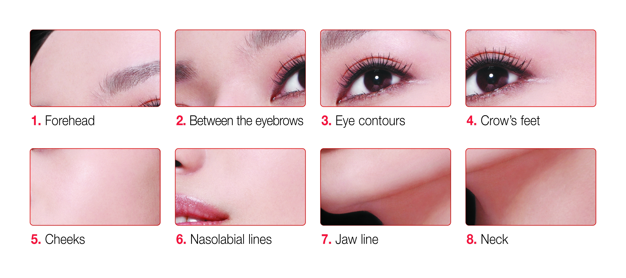 L’oreal Paris laboratory has identified 8 key zones of Asian women (I guess that makes this an Asia exclusive product) that are prone to ageing, namely:-