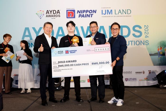 Nippon Paint is proud to announce the winners of the 2024 Asia Young Designer Awards (AYDA), with Lew Wai Fong from Universiti Malaya (UM) and Tan Ee Wei from Equator College securing the Architectural and Interior Design Gold Awards, respectively.