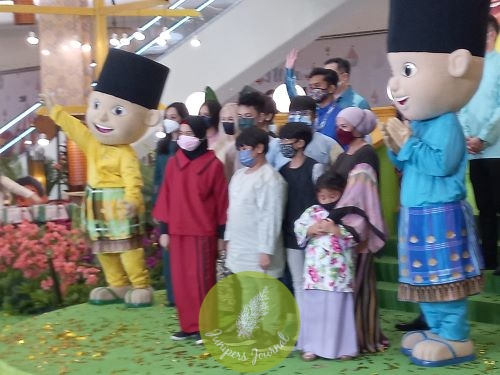 The festive decoration features several rustic traditional gazebos strewn with colourful batik, festive lights and palm trees set up to create a welcoming atmosphere for all shoppers this Raya.