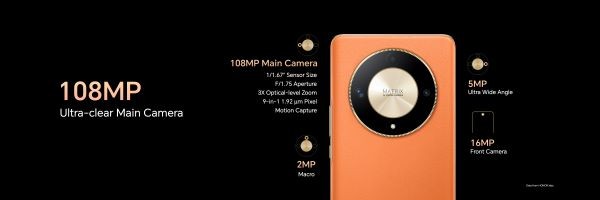 The HONOR X9b 5G boasts a triple camera system consisting of a 108MP Ultra-Clear Camera, a 5MP Ultra-Wide Camera, and a 2MP Macro Camera. The 108MP Ultra-Clear Camera comes with a large 1/1.67-inch sensor and a large f/1.75 aperture, allowing it to capture more light and produce images with vivid clarity. The camera also offers high optical quality with 3X zoom and an outstanding motion capture engine, ensuring the HONOR X9b 5G produces clear snapshots with fascinating detail.