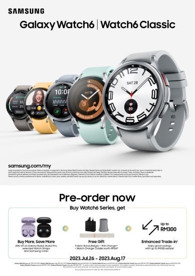 Samsung knows that you can’t wait to own the latest Galaxy innovations, so get ready to pre-order them all from 26 July – 17 August 2023. Get your hands on the Galaxy Z Fold5 from RM6,799, Galaxy Z Flip 5 from RM4,499, Galaxy Watch6 Classic from RM1,399, Galaxy Watch6 from RM1,099, Galaxy Tab S9 Ultra from RM6,499, Galaxy Tab S9 Plus from RM5,199 and Galaxy TabS9 from RM4,199.