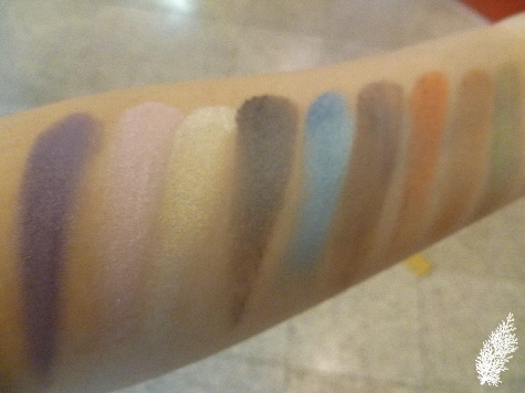 Never mind that the packaging is cardboard, at that price one can hardly complain! The palette contains a side mirror (not very big but adequate) and sponge applicator. One look at the eyeshadows told me these would be good.
