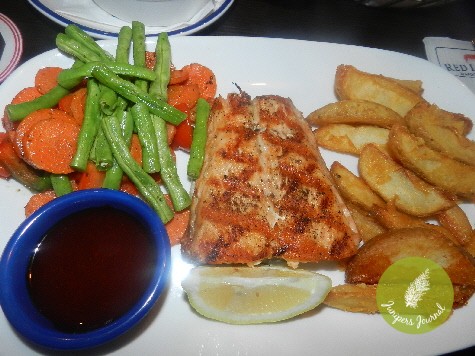 I didn’t like my grilled salmon at all. The vegetables were hard and so was the salmon which was overcooked and dry. The only thing truly edible were the potato wedges. The main course was a total disappointment.