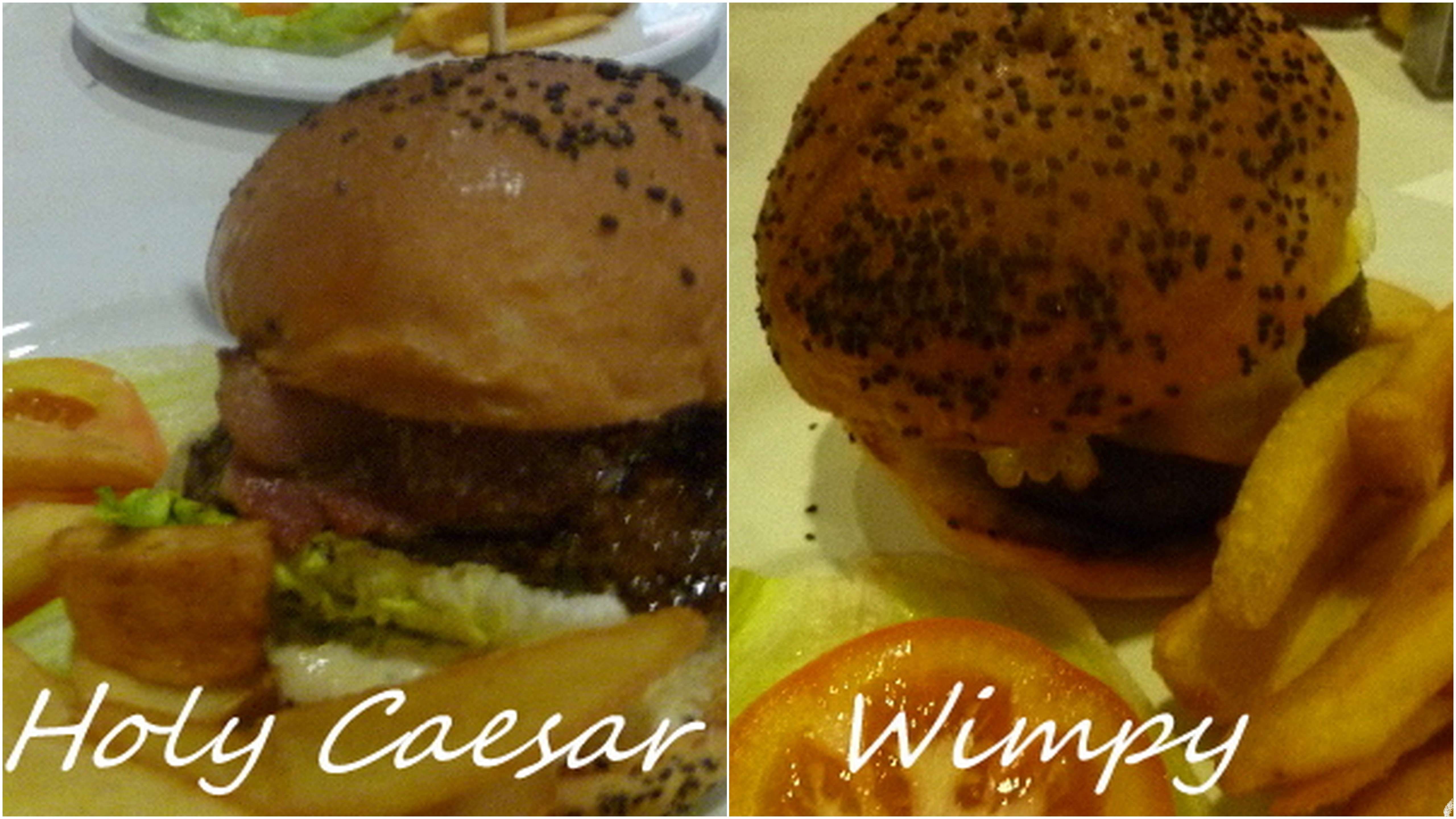 The burgers may be pricier than your typical burger joint’s but they are of a very decent size and very appetising. Holy Caesar didn’t disappoint primarily because of the juicy, yummy bacon dripping with fat (you only live once is my motto) coupled with the parmesan cheese. However, the tender chicken patty was practically tasteless once I had a bite of the lamb patty in the Wimpy. The lamb was so tender and marvellous that I almost regretted ordering the Holy Caesar. Holy Caesar has (what else?) Caesar dressing while Wimpy has BBQ dressing.