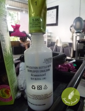 The first step is to squeeze all the Color Cream into the Developer Emulsion bottle. I’d brought along another box of hair color just in case this box wasn’t enough for my hair but turned out, there was enough to cover my hair from root to tip. Impressive.
