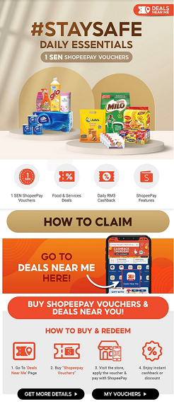 Launched in April 2021, this online-to-offline (O2O) feature by Shopee’s mobile wallet, ShopeePay, ‘Deals Near Me’ uses location-based services to help users discover ShopeePay Vouchers by nearby merchants which includes retail, cafes, restaurants, and services. Through this feature, users can enjoy attractive cashback at the store of their choice. Just purchase the store’s ShopeePay Voucher on the Shopee app for as low as 1 sen, apply the voucher when paying with ShopeePay at participating outlets to enjoy the cashback. To check out these deals, go to Shopee’s homepage on the app and look for the ‘Deals Near Me’ in-app portal.