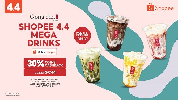 From now to 31 March, Gong Cha fans will get to enjoy an immediate RM4 cashback with a minimum spend of only RM10. It is applicable for a one-time use throughout the campaign duration when purchasing any Gong Cha beverages with ShopeePay at any outlet.