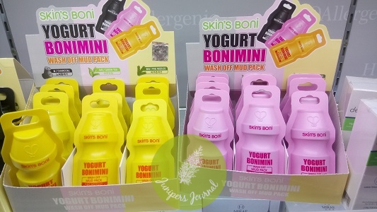 When I saw Skin’s Boni Yogurt Bonimini Wash Off Mud Pack at Caring Pharmacy, I thought is its resemblance to the Vitagen bottle. There are 3 types in different colours – Charcoal (black), Green Tea (pink) and Pine Needles (yellow). If Vitagen ever came up with skincare, it might look something like these.