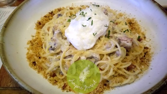 Smoky Carbon appealed to me as soon as I saw it on the menu. It has crispy pork bacon, button mushroom topped with Italian Cream, cheese and poached egg. I like all the ingredients. It was so rich and creamy, came to the table piping hot. Everything blended together well. I would have loved more pork bacon (so crispy) and button mushroom. The poached egg was the pièce de résistance and definitely added to the value.