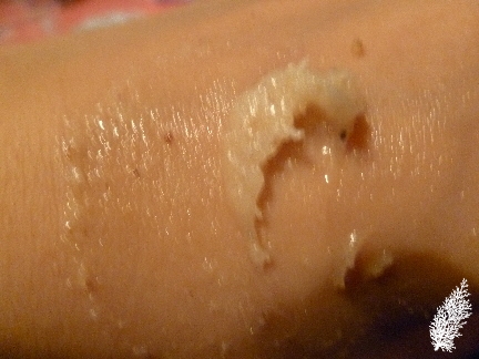 This light brown scrub is quite thick and comes in a 300ml tub with a “warning” on the bottom of the tub declaring “We are also legally obliged to remind you that THIS IS NOT A FOOD”. This oat, shea butter and sugar body smoother can so easily be mistaken for one just from its scent.