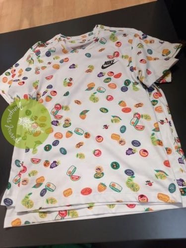 When I go into a sports store like Adidas or Nike, I also look at the men’s section as I’ve found men’s shirts designs to be sometimes nicer than women’s and I have bought Adidas men’s shirts for myself. A few weeks ago, I was very taken by Nike’s candy-themed shirt and yes, it’s for men.
