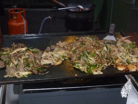 The teppanyaki stall outside offers a choice of beef, “sotong” and prawns. The beef wasn’t very tender so I just went back for the seafood which were fried in a big “wok” before being transferred on to the hot plate which was then transferred on to individual hot plates according to customers’ requests.