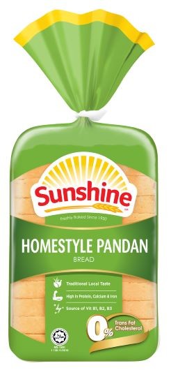 Sunshine Homestyle Pandan Bread is a nutritious option for Pandan lovers everywhere as it is high in protein, calcium and iron, an excellent source of Vitamins B1, B2 and B3, and comes with 0% trans fat and 0% cholesterol.