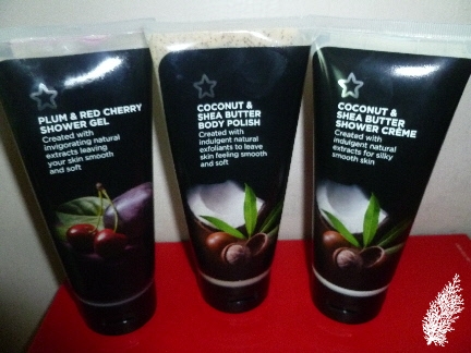 Coconut & Shea Butter Shower Creme is probably the best product of the 3 I bought as it is thick and creamy so I squeeze out less than the Plum & Red Cherry Shower Gel (this one finished too quickly). It also produces a bit more lather than the Plum & Red Cherry and the scent lingers for some time on my hands after my shower.