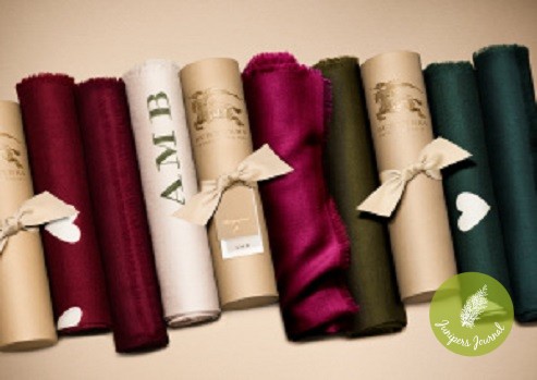 . The scarves are available in two weights – classic and lightweight cashmere and a wide variety of colours, checks and seasonal prints.