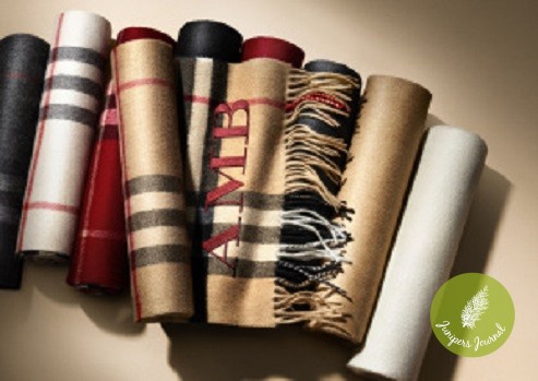 . The monogramming service is carried out through Burberry.com, with all scarves made and personalised in the UK, for delivery from two days to three weeks depending on the delivery location