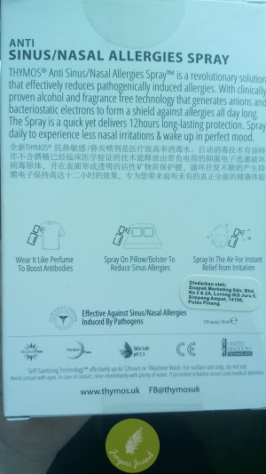 Two night ago when it was particularly cooler than usual thanks to the persistent rain almost all day I suddenly had a sinus attack as I was trying to sleep. At that time, I did not remember that I had Thymos Sinus/Nasal Allergies Spray which could probably help me breathe better. One of my nostrils was severely blocked and I was trying to breathe properly.