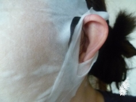 So this isn’t your typical sheet mask as it has ear flaps. In fact, it has 2 ear flaps, the 2nd one forms part of the flap that covers the chin so when I pull these flaps up to my ears, it has a firming effect and the mask fits more snugly since it adheres closer to my skin.