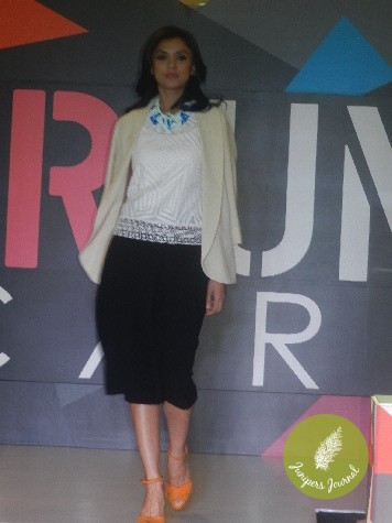 The TRIUM CARD Anniversary Collection features two distinct yet cohesive lines made up of a 70’s bohemian vibe and contemporary alternative styles. The bohemian theme features amber, cream and olive colours with peeks of Aztec and paisley print. The pieces are of denim and cotton, cold shoulder A-line tops, midi column skirts with side slits and drop-waist sun dresses.