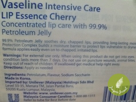Occasionally, my lips get very dry which is why matte lipsticks are unsuitable for me. I’ve been using Vaseline in a tub but of course it’s a little strange to be taking the tub out in public and dipping my finger in. Then I spotted Vaseline Intensive Care Lip Essence Cherry on sale at Guardian.