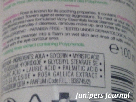 My face doesn’t feel dry or tight after the foam has been washed off. Apart from the Rose Polyphenols, the other main ingredients are Glycerin, Shea Butter, Allantoin and Vichy Thermal Spa Water. I’ve absolutely no complaints about its efficacy as it removes all traces of make-up other than eye make-up which I always advocate using a separate eye make-up remover for. However, when I accidentally got some of the foam in my nose while bending over the sink, it stung quite badly even though I was careful not to inhale. Even after I washed all vestiges of it from my nostrils, it was still stinging so be careful not to get any of it in your nose.