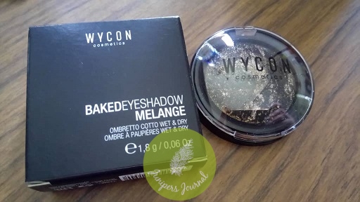 Baked eyeshadows are generally much more pigmented than regular eyeshadows. You can also use them wet or dry. Using them wet means a more intense/stronger look. I have Wycon Cosmetics Baked Eyeshadow in Golden Black shade which has streaks of gold within the black. This is quite a stunning shade, best reserved for evenings.