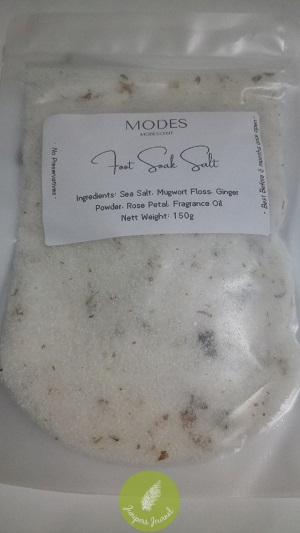 This 150g packet of foot soak salt is from a local seller and priced at RM5.93. The ingredients include Sea Salt, Mugwort, Ginger & Rose Petal. Unlike the epsom salt foot soak I ordered from another local seller, this one smells of roses and I much prefer this over the epsom salt.