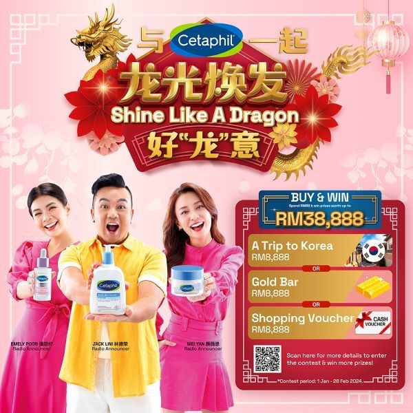 To add to the excitement of the festivities, Cetaphil® introduces the Buy & Win Contest, offering shoppers an incredible chance to win an array of exciting prizes including a trip to Korea, a Gold Bar, Shopping Cash Vouchers and more. Running from today until 28 February 2024, shoppers who purchase a minimum of RM88 worth of Cetaphil products can participate by simply sharing their receipts to 010-793 1060 or a chance to win. For further details on the “Shine Like a Dragon” campaign and the Buy & Win Contest, please visit https://www.cetaphil.com.my/en/shine-like-a-dragon.html